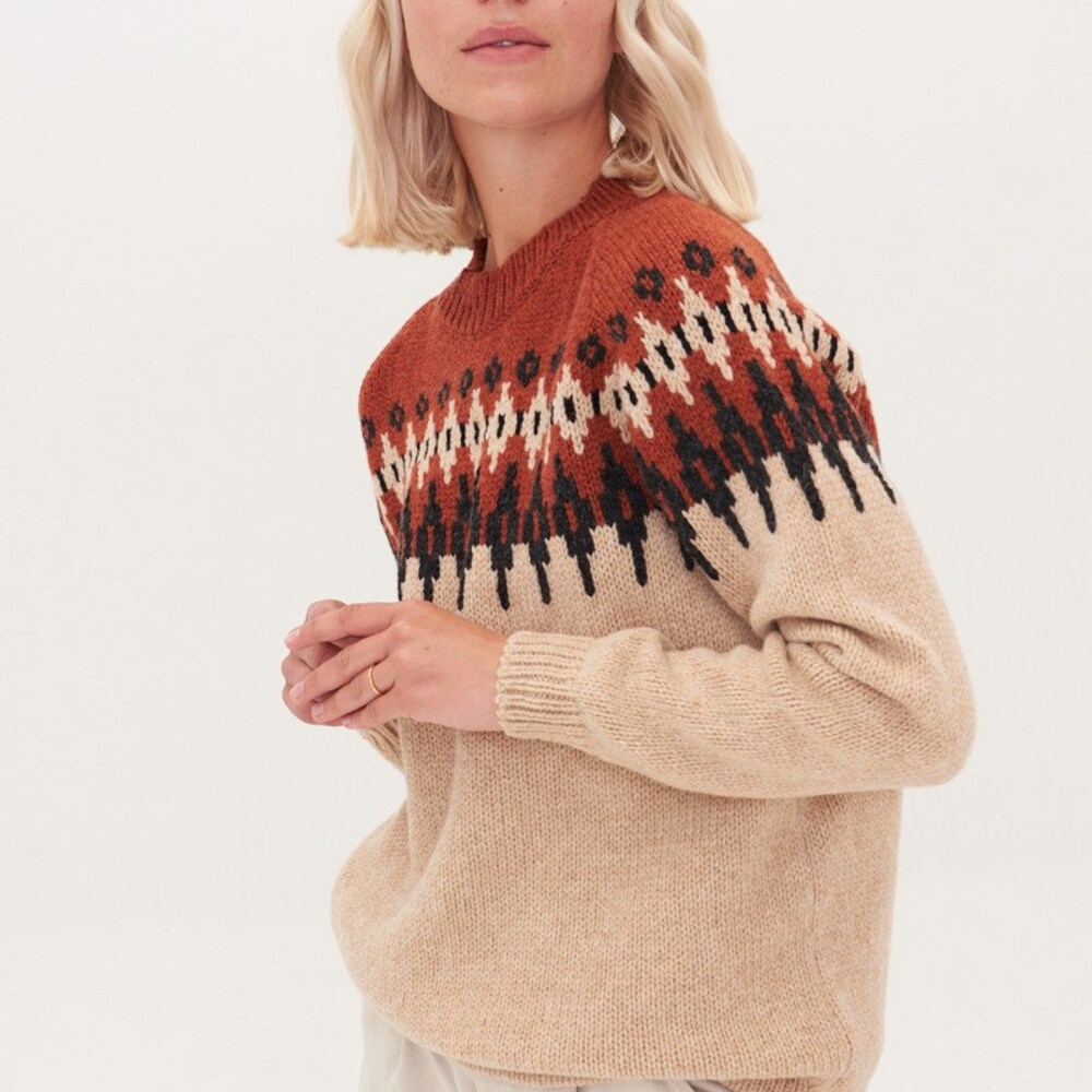 Cosy hand knitted pullover delivers calm colour, scandinavian type nordic ornaments inspired by Scandinavian mood. Hand knitted womens sweater is designed of perfect colour match, merino wool garment gives a great silhouette to any outfit.