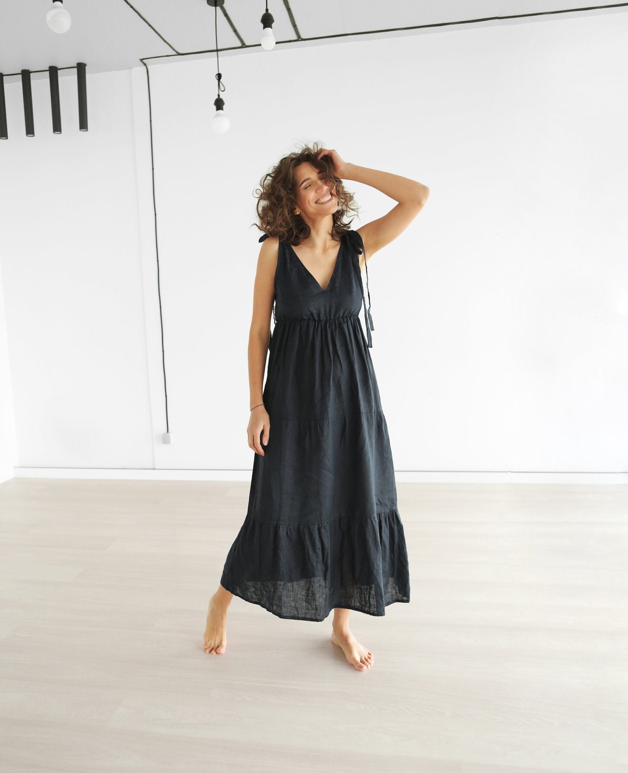 A lightweight and breathable linen dress is ideal for hot summer weather. Take it with you on vacation, wear it at home, on the street or at the beach. The natural fabric molds to your body shape and over time become softer.