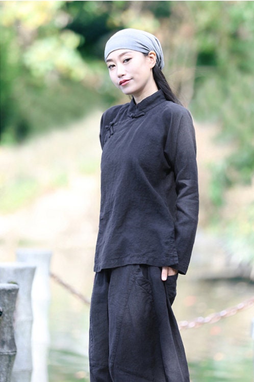 Linen Top Long Sleeve Boho Chic Casual Fit F35