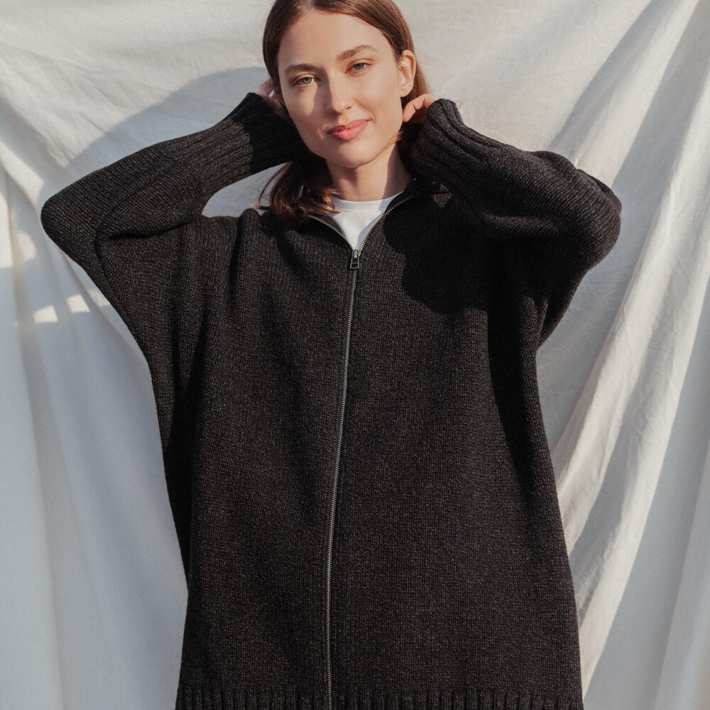 Zipper closure, longer length ending, and a hood is perfect for a leisure lifestyle and slow weekends.