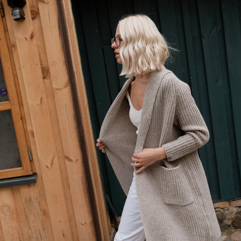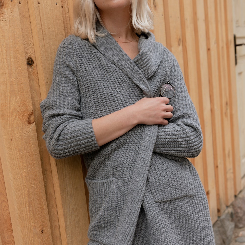 Die Strickjacke mit zwei bequemen Taschen wird Sie für viele Jahre ganz gemütlich halten. Nachhaltige Bio-Wollbekleidung wird von skandinavischen Inspirationen eines langsamen und ruhigen Lebensarts hergestellt.